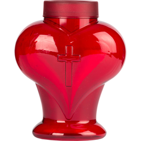 Műanyag szív alakú mécses. Piros és átlátszó színben.