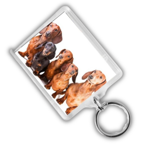 Aranyos tacskós műanyag kulcstartó magas minőségű fotóval. Strapabíró és stílusos kiegészítő minden tacskó rajongónak