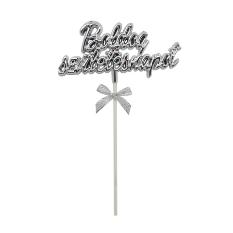1 kép Műanyag tortadekoráció, torta beszúró – Boldog születésnapot – Ezüst