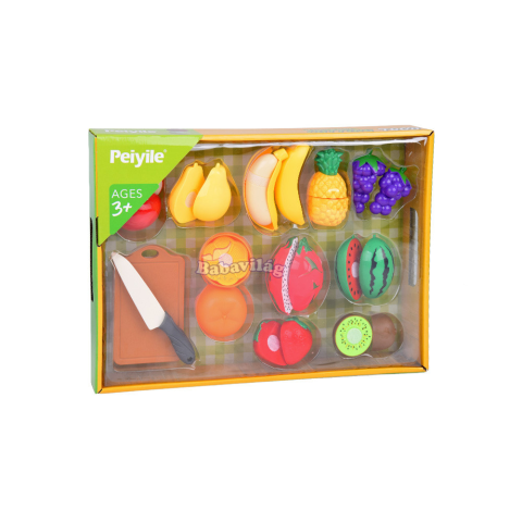 Teljes Műanyag vágható gyümölcs vágódeszka + kés konyhai játékkészlet termékleírás