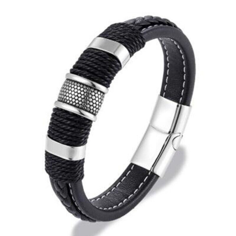 Műbőr karkötő, fekete-ezüst színű karkötő árgrafikon