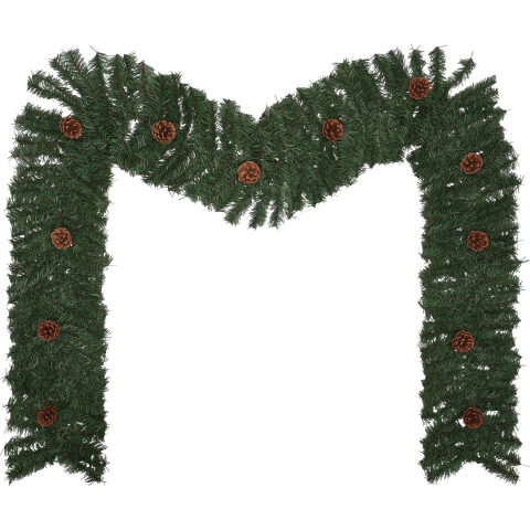 A többször használható műfenyő girland ajtók vagy kandallópárkányok karácsonyi díszítéséhez használható. 180 darab ága hűen utánozza az igazi fenyőágakat. Teljes hossza 270 cm. A karácsonyi dekoráció sötétzöld színű PVC műanyagból készült. A drót alapnak köszönhetően az összes ág a kívánt irányba állítható. Díszítésként a girland 12 kanadai fenyőtobozzal rendelkezik, amelyek eloszlanak a girland teljes hosszán. A tobozos girland beltéri és k