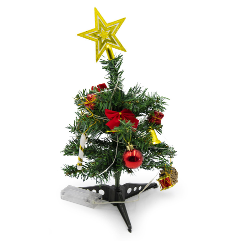 Műfenyő LED fényekkel, díszekkel - 32 cm