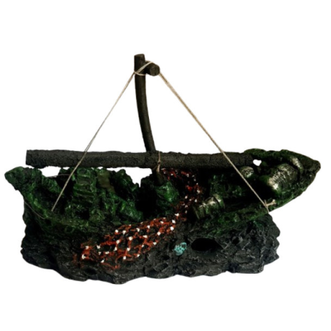 A műgyanta dekor közepes árbócos hajó egy részletgazdag, kalózhajót idéző akváriumdísz, amely izgalmas víz alatti hangulatot teremt. Búvóhelyet biztosít halaknak és garnéláknak, miközben díszítőelemként is funkcionál. pH-semleges, nem mérgező anyagból kés