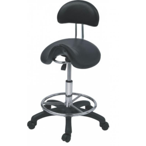 Króm lábtartó. Speciális ülőfelület kialakítás. Ülőfelület:nyereg alak szélesség:38cm hosszúság:42cm Háttámla magassága:30cm szélesség:17cm hosszúság:31cm Magasság:állítható alsó:43cm felső:57cm