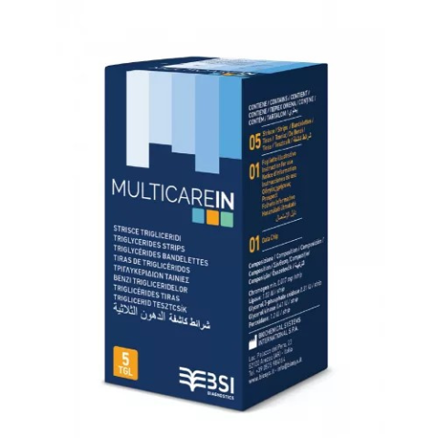Kiszererlés: 5 db A MultiCare IN triglicerid tesztcsík kizárólag a MultiCare IN vércukor-, koleszterin-, trigliceridszint-mérő készülékhez használható! .