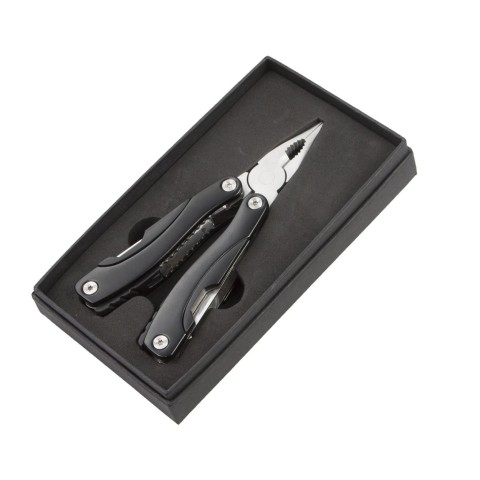 Rozsdamentes acél multifogó 8 funkcióval,alumínium nyéllel, fekete szivaccsal bélelt díszdobozban szállítjuk. Méret: 180×96×27 mm Rendelésre: 3-10 nap!
