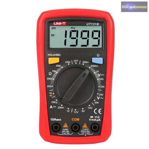 UNI TREND UT131B – AC és DC feszültség – DC áram – Ellenállás – Kézi méréshatárváltás – Dióda – Battery Test – Szakadásvizsgálat – Túlterhelés figyelmeztetés – Data Hold – Alacsony elem töltöttség jelzés – Automatikus kikapcsolás – Automatikus háttérvilá