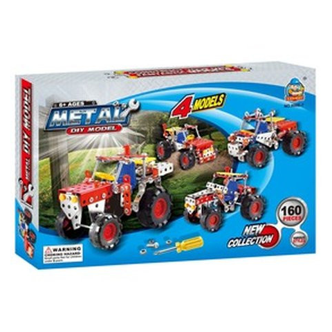 Több módon is összeszerelhetsz traktorokat, teherautókat! A Munkagép 4 az 1-ben 160 darabos fém építőjáték rengeteg fém alkatrészt, műanyag kiegészítőt tartalmaz, amikből többféle traktort, és egy teherautót is össze tudsz rakni. Ragadd meg a csavarhúzót, a villáskulcsot, állítsd össze az alkatrészeket, miközben barkácsolsz, fejlődik a műszaki érzéked és a kézügyességed is! A Munkagép 4 az 1-ben 160 da