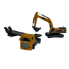 Munkagépet szállító kamion. Az elemei mozgathatóak. Méretei: 30x 5x 8,5 cm.