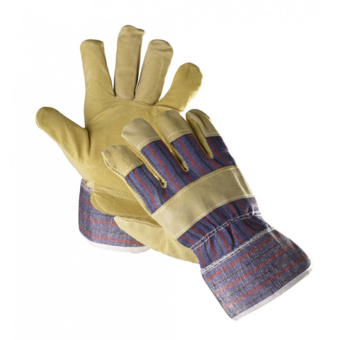 Kombinált védőkesztyű marha hasított bőrből, bélelt tenyérrel, vászon kézháttal és mandzsettával. Jellemzői: -Hasítékbőr tenyér -Vászon kézhát és mandzsetta -Pamut tenyérbélés -Artéria-, köröm- és ökölcsontvédő -Méret: 10-es