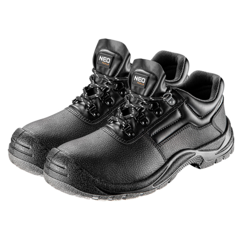 NEO marhabőrből készült munkacipő ami védi a lábat a hidegtől, az átnedvesedéstől és a beázástól. A cipő belseje hálós mintájú szövettel van kialakítva. A fém fűzőszemek között a cipőfűzők fényvisszaverő elemekkel rendelkeznek, amelyek jobb láthatóságot biztosítanak. A cipő tulajdonságai: O2 SRC besorolás, antisztatikus, olajálló, csúszásálló, CE tanúsítvány, EN ISO 20347: 2012 SRC FO O2 szabványnak megfelelő Munkacipő, O2 SRC, marhabőr, fényv
