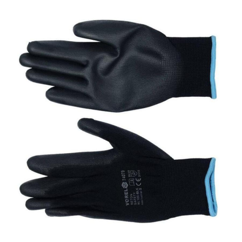 Munkavédelmi kesztyű fekete, 9-es méret TO-74079A GCPU0109B típusú fekete védőkesztyűk kiváló minőségű poliészterből készülnek (13-as szövés), a tenyérrészen poliuretán bevonattal ellátva. Ez a kombináció rendkívül kopásálló, rugalmas és jól szellőző védelmet biztosít, miközben megőrzi a precíz tapintásérzetet.A kesztyű strapabíró szegéllyel készült, ami növeli a tartósságát, és kényelmes viseletet biztosít hosszabb munkavégzés során is. I