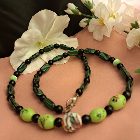 Feltűnő és egyedi ékszerek kedvelőinek ajánlom.Antik gyöngyök felújítva és átalakítva. Szélesség: 0,8 cmHosszúság: 58 cm