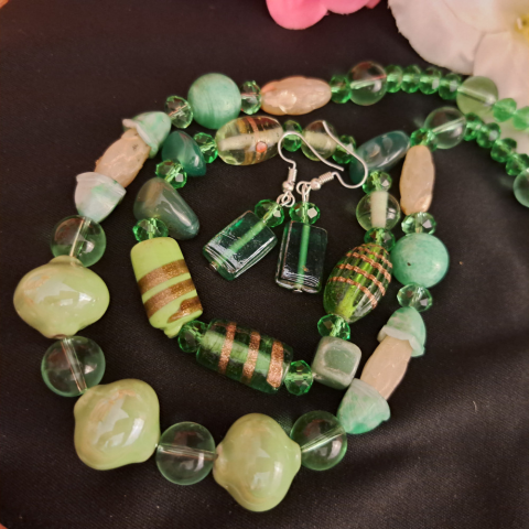 1 kép Muránói üveg nyaklánc + fülbevaló + karkötő, egyedi és látványos.