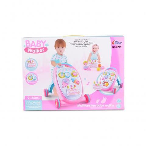 MUSIC BABY WALKER járássegítő sütis PINK Színes, kényelmes, praktikus és többfunkciós - a Cake zenélő járássegítő, vagy járókeret nagyszerű választás 9-36 hónapos korú gyermekek számára, 15kg-ig ajánlott. Érdekes kialakításával és lágy rózsaszín színév