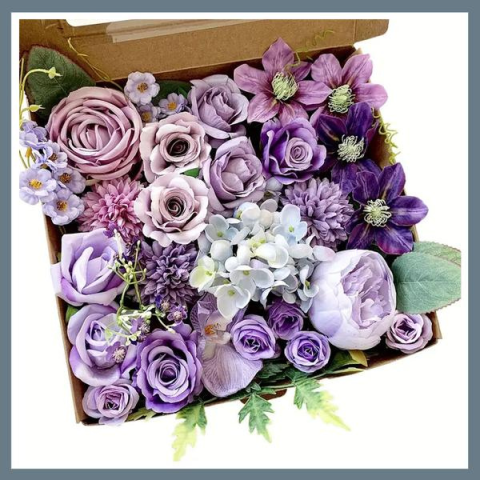 Mű virágcsokor - lila árnyalatok DT709856Tartalom: Különböző méretű és típusú virágfejek – rózsák, boglárkák, hortenzia, krizantém, klemátisz, levelek és apró bogyós díszekSzínvilág: Lila, levendula, fehér, rózsaszín árnyalatokAnyag: Puha műselyem és műanyag szárStílus: Romantikus, vintage vagy modern dekorációhoz is illeszkedikFelhasználás: DIY csokrok, koszorúk, ajándékdobozok, asztaldíszek, esküvői háttérfalak készítéséhez