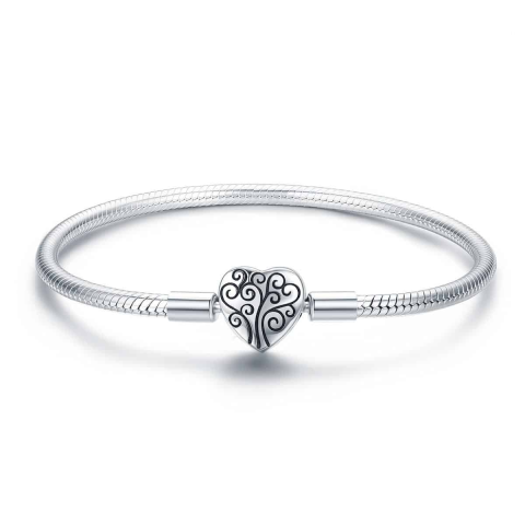 1 kép MyCharm Életfa | Családfa Szívben 925 Ezüst Kígyólánc Charm Karkötő – 19 cm