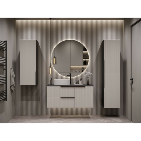 Mylife Klerk 100 Fürdőszoba bútor szett - Antracit/Kasmír ✨ Teremtsen elegáns és modern hangulatot fürdőszobájában a Mylife Klerk 100 fürdőszoba bútor szettel! Ez a stílusos szett antracit színű korpusszal és kasmír színű, hornyolt MDF frontokkal ren...