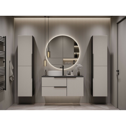 Mylife Klerk 100 Fürdőszoba Bútor Szett - Antracit/Kasmír ✨ Teremtsen modern és elegáns hangulatot fürdőszobájában a Mylife Klerk 100 fürdőszoba bútor szettel! Ez a stílusos szett tartalmaz egy mosdószekrényt és egy függőleges szekrényt, melyek tökél...