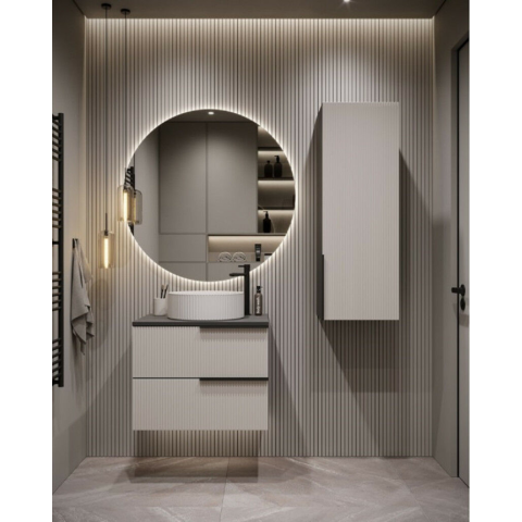 Mylife Klerk 60 Fürdőszoba Bútor Szett - Antracit/Kasmír ✨ Ez a stílusos Mylife Klerk fürdőszoba bútor szett tökéletes választás modern fürdőszobádba. A szett tartalmaz egy mosdószekrényt és egy függőleges szekrényt, melyek praktikus tárolást biztosí...