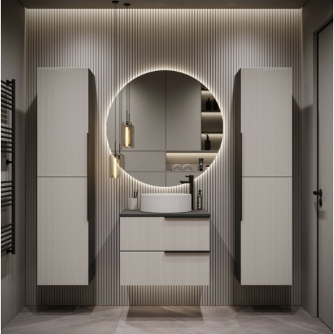 Mylife Klerk 60 Fürdőszoba bútor szett - Antracit/Kasmír színben 🛁 Ez a stílusos és praktikus fürdőszoba bútor szett tökéletes választás minden modern fürdőszobába. A szett tartalmaz egy mosdószekrényt és két függőleges szekrényt, melyek elegendő tár...
