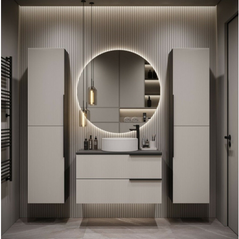 Mylife Klerk 80 Fürdőszobabútor Szett - Antracit/Kasmír ✨ Ez a stílusos és praktikus fürdőszobabútor szett tökéletes választás modern fürdőszobádba. A szett tartalmaz egy mosdószekrényt és egy függőleges szekrényt, melyek elegáns antracit és kasmír s...