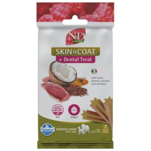 N&D Quinoa Dog Jutalomfalat Skin&coat Duck Adult Med&max 100g jutalomfalat kutyáknak 1 kép