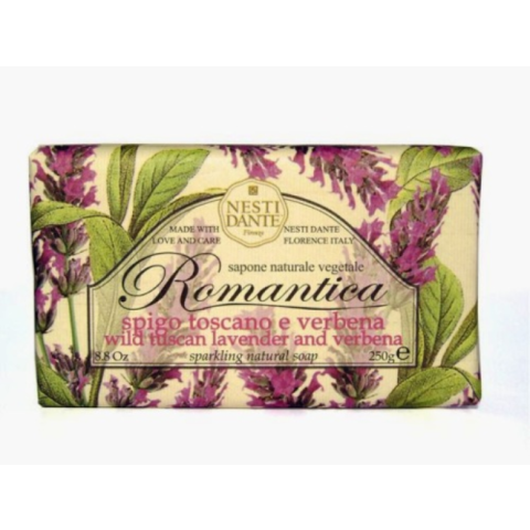 A(z) Romantica, vad toszkán levendula és verbéna szappan 250g egy stílusos és igényes darab szappan anyagból készült . A termék a(z) Nesti Dante márka kínálatából származik , eredeti származási helye: Olaszország.