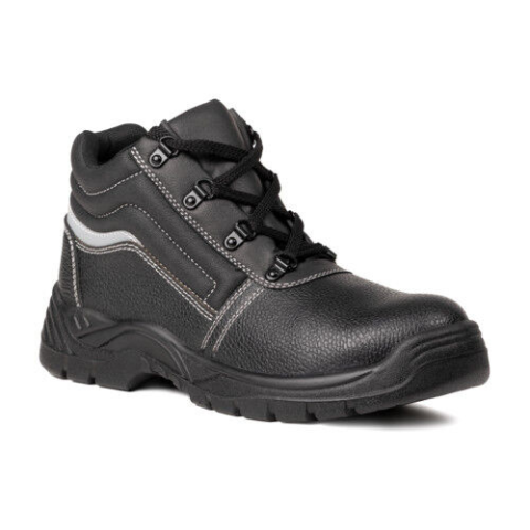 NACRITE S1P SRC FEKETE VÉDŐBAKANCS_47 * fekete biztonsági védőlábbeli acél orrmerevítővel és talplemezzel * olajálló, antisztatikus kétrétegű PU talp, SRC csúszásmentesség és energiaelnyelő sarok * szivacsos bokarész és békanyelv, sarokrészen fényvis