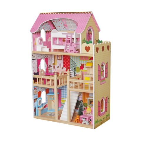 Zola babaház bútorokkal - A tökéletes otthon a babáidnak! 🏡💖 Ez a nagy, fából készült babaház a Zola babáknak készült, és minden kis hercegnő álma! A 90 cm magas luxus babaház tágas, háromszintes kialakításával végtelen szórakozást és kreatív játékl...