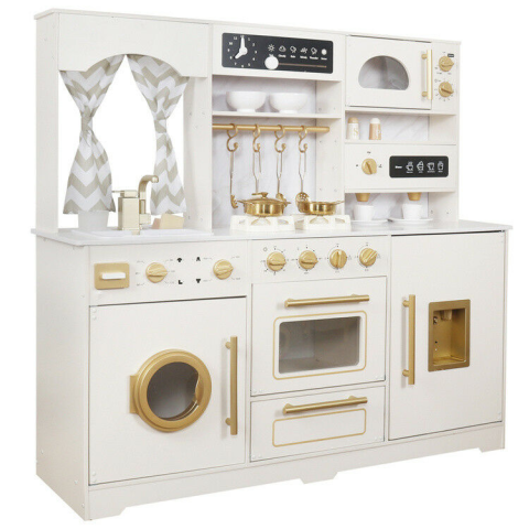 Fa Játékkonyha Glamour Stílusban: Fényekkel és Hangokkal ✨ Ez a gyönyörű, nagy fa konyha tökéletes ajándék minden kis szakácsnak! Aranyos, glamour stílusú dizájnnal, fény- és hanghatásokkal, a játék garantáltan órákon át leköti a kicsiket. A valósá...
