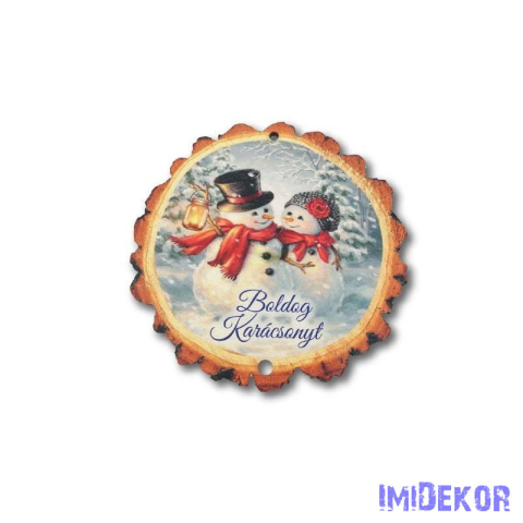 Nagy farönk 9,5cm - Sétáló hóemberpár dekorációs kellék 1 kép