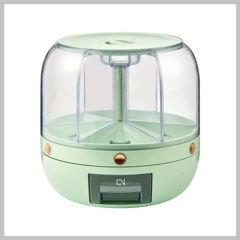 Nagy Kapacitású Konyhai Forgó Tárolóedény Fedéllel KD324698 Kiváló minőségű anyagok: vízálló műanyagból készült, tartós és könnyen tisztítható.Forgó dizájn: könnyedén hozzáférhetünk a tárolt anyagokhoz, mivel a tárolóedény forgatható.Többcélú használat: ideális gabonák, diók, rizs és egyéb élelmiszerek tárolására.Kényelmes tárolás: segít a konyhai rendezésben és tárolásban, megkönnyítve az alapanyagok gyors elérését.Méretek:Átmér