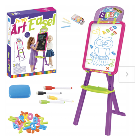 99cm magas kétoldalas mágnestábla rajztábla filcekkel krétákkal betűkkel számokkal pinkMinden kisgyermekben ott szunnyad a művész, aki alig várja, hogy testet kibontakozhasson.Amint az első rajzolásra alkalmas eszköz csemeténk kezébe kerü