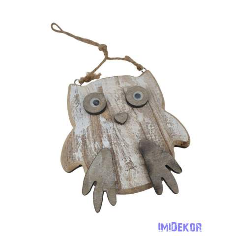 Nagy koptatott fa bagoly dekorációs kellék 1 kép