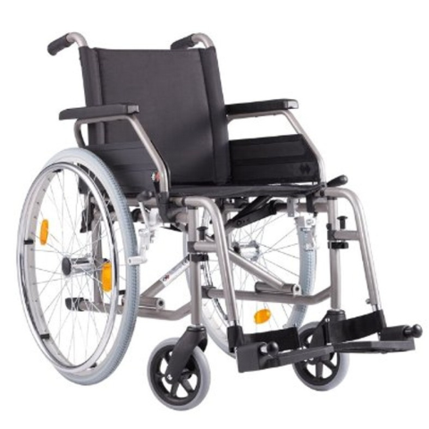 Nagy beülő szélességű, nagy teherbírású standard, önhajtós kerekesszék. - állítható kartámasz hossz - állítható ülés magasság 51-56 cm között - fokozatmentesen állítható lábtámasz hossz: 39-48 cm - állítható szögű lábtámasz: 0-32 fok - háttámla állít