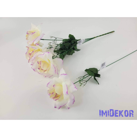 1 kép Nagyfejű szálas selyem rózsa 51 cm - Fehér-Lila Cirmos