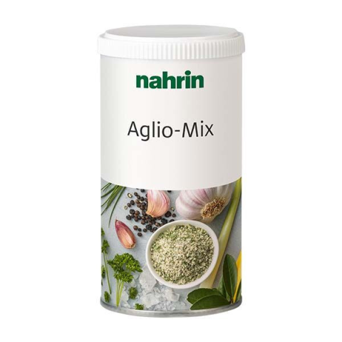 Az Aglio-Mix fokhagymás fűszerkeverék friss és kiegyensúlyozott fokhagymás ízével győz meg. A fokhagymás pelyhes fűszer 100%-ban természetes összetevőket tartalmaz, ízfokozókat nem tartalmaz. A szárított fűszernövények magas aránya és a friss citromjegy