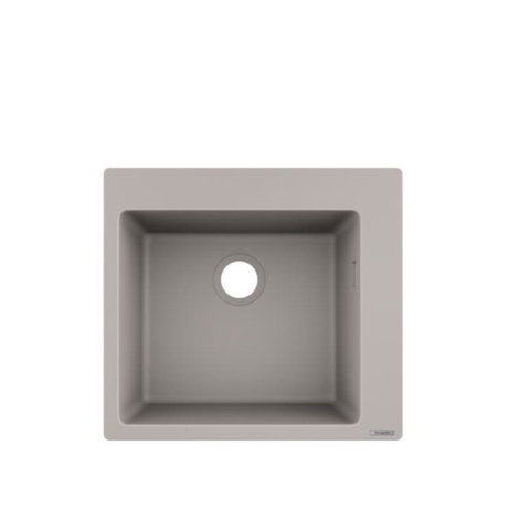 Gránit egymedencés mosogató beton szürke színben, 56x51 cm méretű és 19 cm mély munkalapra szerelhető. 60 cm széles szekrénybe szerelhető.