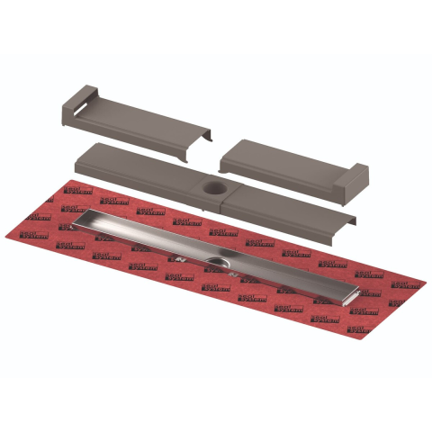 Egyenes csatornatest festékre történő felszereléshez, gyártó által felszerelt karimával a zuhanycsatorna összekötéséhez kompozit tömítéssel a DIN 18534 szabvány szerint.