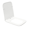 Fehér színű, szögletes kialakítású WC-ülőke lassan összecsukható és könnyen eltávolítható funkcióval.