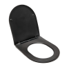 Fekete színű WC-ülőke lekerekített kivitelben, lassú összecsukhatóság és könnyű eltávolítás funkcióval.