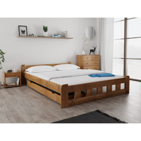 A Naomi ágy eredeti megjelenésével elvarázsolja Önt! Klasszikus megjelenésével tökéletesen kiegészít minden hálószobát, és könnyen kombinálható más bútorokkal, azért is, mert számos színváltozatban kínáljuk. Az ágy magasított fekvőhelyet biztosít, így időseknek és mozgássérülteknek is alkalmas. Az ágy kiváló minőségű szilárd fenyőfából készült, amely két rétegű védőlakkal kombinálva garantálja a tartósságot és a hosszú élettartamot.