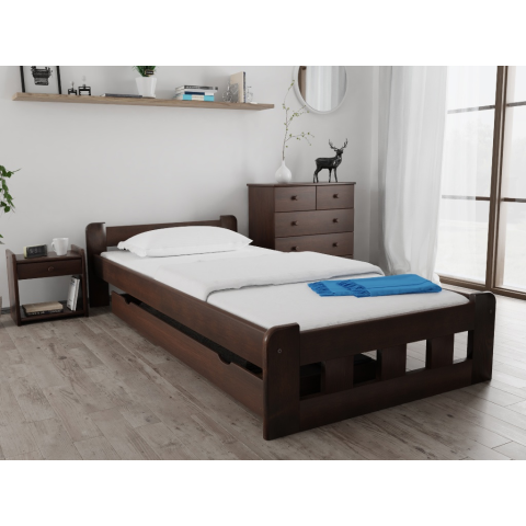 A Naomi ágy eredeti megjelenésével elvarázsolja Önt! Klasszikus megjelenésével tökéletesen kiegészít minden hálószobát, és könnyen kombinálható más bútorokkal, azért is, mert számos színváltozatban kínáljuk. Az ágy magasított fekvőhelyet biztosít, így időseknek és mozgássérülteknek is alkalmas. Az ágy kiváló minőségű szilárd fenyőfából készült, amely két rétegű védőlakkal kombinálva garantálja a tartósságot és a hosszú élettartamo