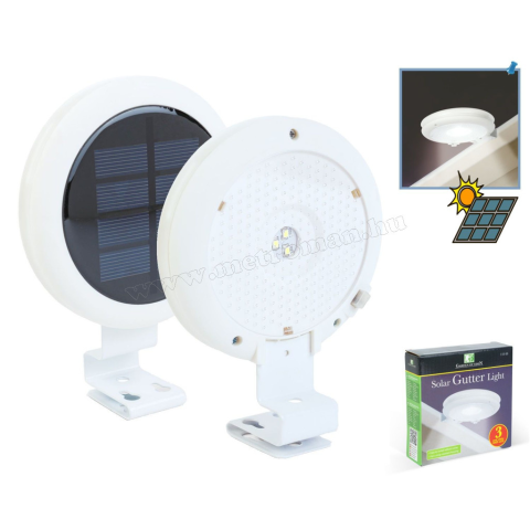 Különleges kialakítású energiatakarékos szolárlámpa Ereszcsatorna fény. Falra, ereszcsatornára, kerítésre, balkonra is rögzíthető. Nappal a napsütésnek köszönhetően a beépített akkumulátor feltöltődik, este pedig automatikusan bekapcsol a lámpa. Napelemes