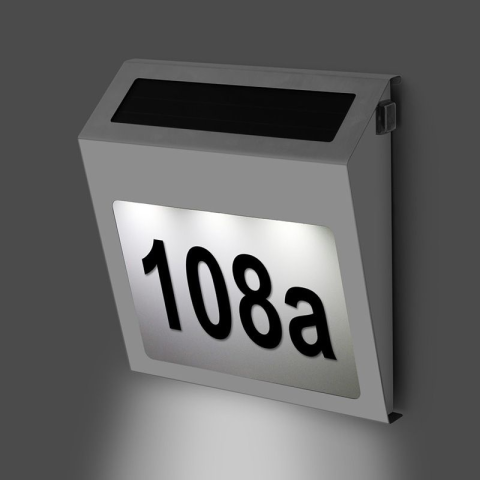 Napelemes Házszámtábla A LED-világításnak köszönhetően sötétben is kiválóan látszanak a számok. Újratöltés nélkül működik, a közvetlen napfényből nyeri az energiát. A világítás automatikusan bekapcsol szürkületkor, ezért mindig jól látható a házszám.