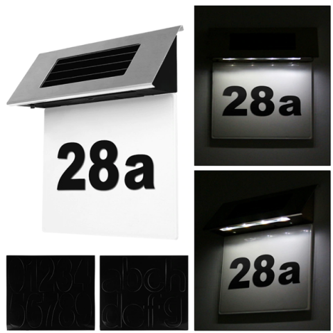 Napelemes házszámtábla rozsdamentes acélból