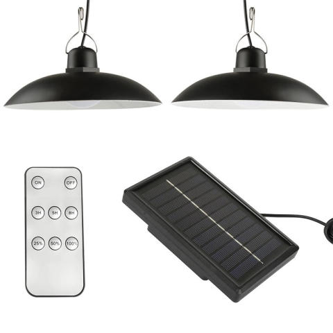 1 kép NAPELEMES KÜLTÉRI LED LÁMPA – 2 DB LÓGÓ LÁMPA, BÚRÁVAL ÉS TÁVIRÁNYÍTÓVAL