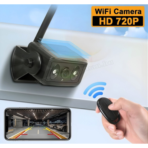 A napelemes, vezeték nélküli tolatókamera gyors és praktikus megoldás minden autóhoz. A mágneses rögzítésnek köszönhetően percek alatt felszerelheted, kábelezés nélkül. A 2.4G WiFi kapcsolat stabil képet továbbít a telefonodra valós időben, így könnyedén